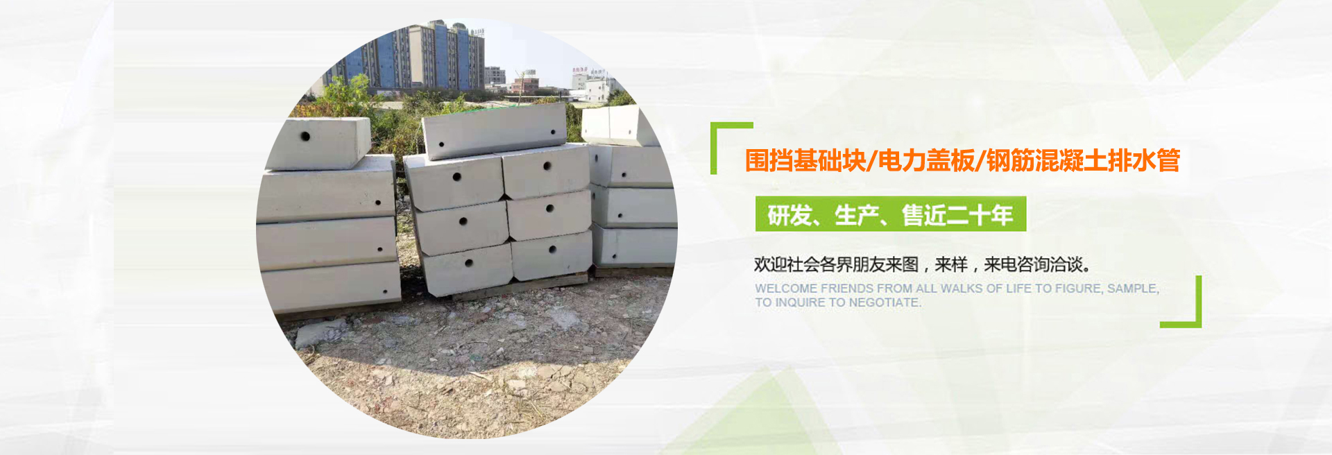 深圳富華環(huán)保建筑材料有限公司(簡(jiǎn)稱富華環(huán)保建筑材料)是一家專業(yè)研發(fā)生產(chǎn)與銷售水泥預(yù)制品的公司,從2001年開始至今,主要生產(chǎn)的產(chǎn)品有:圍檔基礎(chǔ)塊、環(huán)保透水磚、河道護(hù)坡磚、停車場(chǎng)植草磚、電纜溝蓋板、預(yù)制井筒井座、立道牙、平道牙、鋼筋混凝土排水管、頂管、排煙道管、隔離敦、河道仿木欄桿等水泥預(yù)制構(gòu)件, 可針對(duì)每一個(gè)客戶的不同條件和要求,設(shè)計(jì)與生產(chǎn)各種水泥預(yù)制構(gòu)件。